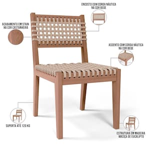 A Cadeira Madeira Maciça Para Cozinha Corda Náutica Giardino G01 Castanheira Bege, da Lyam Decor, combina design moderno com durabilidade e funcionalidade. Com sua intricada tecelagem de corda náutica e estrutura maciça de madeira de eucalipto, essa cadeira de madeira é perfeita para uso interno e externo, seja na cozinha, varanda ou área de entretenimento. Seu design adiciona um toque de elegância a qualquer espaço, enquanto a construção robusta garante qualidade duradoura. Dê um upgrade na sua experiência gastronómica com a Cadeira de Madeira Maciça Giardino. Adicione agora mesmo ao seu carrinho e surpreenda-se!