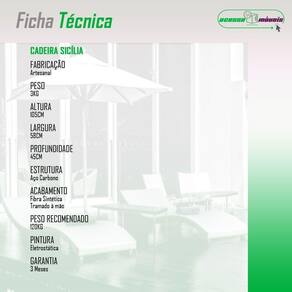 Cadeira Para área Externa Sicília Em Aço Carbono Argila Transforme seu espaco ao ar livre com a elegante Cadeira de Area Sicilia. Esta cadeira e confeccionada em aco carbono, oferecendo uma estrutura robusta e duravel. A pintura eletrostatica garante protecao contra corrosao, tornando-a ideal para uso em ambientes externos. O acabamento tramado em fibra sintetica de alta qualidade nao so proporciona um visual sofisticado, mas tambem e totalmente resistente ao sol e as intemperies, assegurando que a cadeira mantenha sua beleza e funcionalidade por muito mais tempo. Perfeita para varandas, jardins ou areas de piscina, a Cadeira Sicilia e a combinacao ideal de estilo e resistencia, proporcionando conforto e modernidade ao seu espaco. ESPECIFICACOES TECNICAS: - Material da Estrutura: Aco carbono; - Material do Assento: Fibra Sintetica; - Possui Regulagem de Altura? Nao; - E Giratoria? Nao; - Quantidade de Lugares: 1 Lugar; - Peso Total Suportado: 120kg; - Garantia: 3 Meses; - Necessita de Montagem: Nao; - Instrucoes de Cuidado: Utilizar apenas pano umedecido com agua e sabao neutro; - Dimensoes do Produto (LarguraXProfundidadeXAltura): 58x45x105cm - Conteudo da Embalagem: 01 Cadeira; Marca: ACESSE MÓVEIS