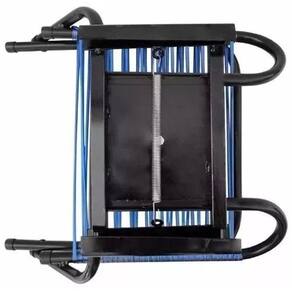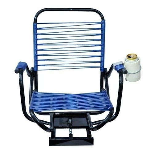 Descrição do produto: Cadeira para barco com base em aço e sua fixação se dá através de mola resistente, com abertura de até 50 cm. Assim, esse sistema de fixação permite uso para qualquer barco. Assento e encosto com fio resistente tipo espaguete de PVC azul. Apresenta acabamento de qualidade, leve, compacta e dobrável.