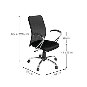 Base giratória cromada com relax e regulagem de altura com sistema a gás. Assento em tecido Space e encostos em tela super resistente preta Base e braço cromados.