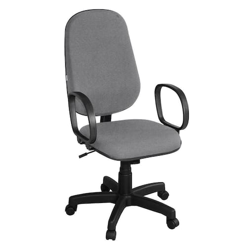 Base giratória com relax e regulagem de altura com sistema a gás. Assento e encosto injetado e anatômico e tapeçado em tecido J. Serrano. Base e Braço na cor preta.