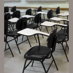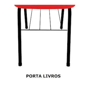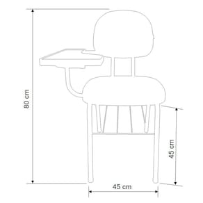 Cadeira Universitária do tipo Secretária, com estrutura metálica e prancheta em madeira.