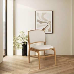 AS IMAGENS SÃO MERAMENTE ILUSTRATIVAS E PODEM SOFRER VARIAÇÕES DE COR E PEQUENOS DETALHES DE ACORDO COM O SEU MONITOR, ILUMINAÇÃO DO AMBIENTE E ATÉ MESMO A SUA PERCEPÇÃO VISUAL.Cadeira para Jantar FlorenÃa Madeira Jequitibà Natural Encosto e Assento em Tecido Linho Bege