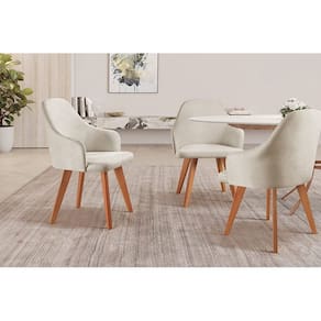 A cadeira Manuela é uma opção refinada e prática para completar sua mesa de jantar. Construída com materiais de alta qualidade, sua estrutura em MDF prensado proporciona uma base sólida e uniforme, garantindo resistência e durabilidade ao longo do tempo. O estofado, elaborado com espuma D28, oferece o suporte ideal para desfrutar de momentos prolongados à mesa, seja em refeições em família ou ao receber convidados. Sua base fixa assegura estabilidade e segurança, adicionando um toque de estilo e praticidade ao ambiente da sala de jantar. Almofada do assento: Fixa Altura do assento até o chão: 45 cm Altura dos Pés: 45 cm Ambiente Principal: Sala de Jantar Cor: Nude Cor do Produto: Nude Cor dos Pés: Amadeirado Dimensões do assento: 45 cm Enchimento do Assento: Espuma D-28 Enchimento do Encosto: Espuma D-28 Escala de Brilho: Semi-Brilho Estrutura do Assento: MDF prensado Itens Inclusos: 1 Cadeira Manuela + manual de montagem Linha ou Coleção: Manuela Material dos Pés: Madeira Material Principal: Linho Necessita Montagem: Não Origem do Produto: Nacional Peso: 15 kg Possui Rodízio: Não Recomendações de Uso, Manutenção e Limpeza: Utilizar aspirador de pó, escova com cerdas macias ou limpeza a seco. Não utilizar produtos químicos, abrasivos ou limpeza a vapor. Evitar exposição prolongada ao sol. Revestimento do Assento: Linho Tipo de Assento: Fixo Marca: Zurc Decor