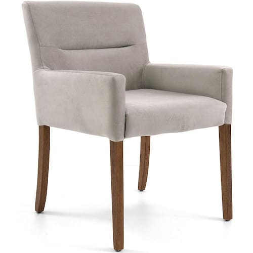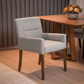 Projetada especialmente para salas de jantar, seu apoio baixo para os braços permite encaixe perfeito sob a mesa, garantindo mais mobilidade e aproveitamento de espaço. Além do conforto, o grande destaque está na sua construção robusta: madeira reflorestada de eucalipto, espumas de alta densidade e acabamento impecável
