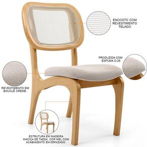 Procurando um modelo de cadeira de jantar que fuja do tradicional, mas que ao mesmo tempo combine elegância e modernidade?! Então, prepare-se para descobrir a Cadeira Para Sala de Jantar Cozinha Estofada e Tela Mariah L02 Bouclê Creme, da Lyam Decor.Com design orgânico expresso nas linhas curvas, essa cadeira estofada, além de cumprir perfeitamente com sua funcionalidade, ao garantir conforto e bem-estar durante as refeições, vai também agregar charme e sofisticação à decoração seja da sua sala de jantar, da cozinha e até mesmo da sua área gourmet, já que detalhes como estrutura de Taeda maciça e encosto com tela harmonizam perfeitamente entre si, criando uma cadeira de madeira incrivelmente linda.