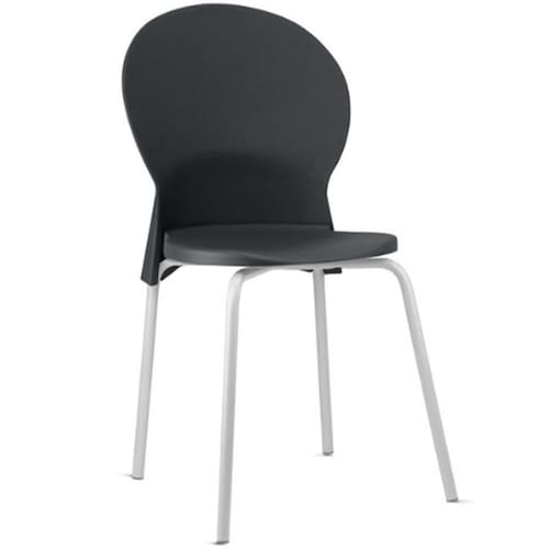 Material do encosto e assento injetado em Polipropileno (PP) 100% reciclável, na tonalidade Preto.