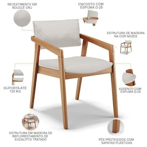 ColorFamily: Cru | Model: Giorgia | ProductInstructions: Produto para uso em ambiente interno, nao devendo ficar exposto ao sol, calor e umidade excessivos. | Cor: CRU | Material: Madeira, Bouclê | MaterialFamily: Madeira | OriginState: Paraná | Cor do estofamento: Cru | Fabricante: Lyam Decor | ColorSupplier: Cru | Color: Cru | ColorSimple: Cru | ProductHeight: 80 cm | SupplierSimpleName: Cadeira Para Sala de Jantar Estar Living Giorgia B04 Bouclê Cru - Lyam Decor | SizeDescription: Altura: 80 cm x Largura: 56 cm x Profundidade: 65 cm | ProductWidth: 56 cm | É cadeira de balanço: Não | Largura do assento: 50 cm | Peso máximo suportado: 130 Kg | OriginCountry: | ProductLength: 65 cm | ProductWeight: 8 kg | ProductWarranty: 90 dias após o do produto | Cor do assento: Cru | ProductContents: 01 Cadeira | Desenho do tecido: Liso | Material do estofamento: Bouclê | Firmeza: Firme | Altura da cadeira: 80 cm | Profundidade da cadeira: 65 cm | Profundidade do assento: 55 cm | É empilhável: Não | Largura da cadeira: 56 cm | Cor da estrutura da cadeira: Nozes | Requer montagem: Não | Altura do assento a partir do solo: 45 cm | Tempo de montagem: na | É dobrável: Não | Espessura do assento: na