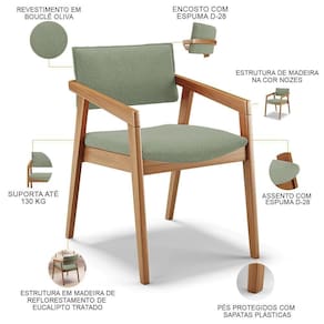 OriginState: Paraná | ProductHeight: 80 cm | Cor: Oliva | Model: Giorgia | Tempo de montagem: na | Firmeza: Firme | ColorFamily: Oliva | ColorSimple: Oliva | ColorSupplier: Oliva | OriginCountry: | Cor do estofamento: Oliva | ProductContents: 01 Cadeira | ProductLength: 65 cm | É cadeira de balanço: Não | SupplierSimpleName: Cadeira Para Sala de Jantar Estar Living Giorgia B04 Bouclê Oliva - Lyam Decor | Fabricante: Lyam Decor | Color: Oliva | ProductWarranty: 90 dias após o do produto | Material: Madeira, Bouclê | SizeDescription: Altura: 80 cm x Largura: 56 cm x Profundidade: 65 cm | ProductInstructions: Produto para uso em ambiente interno, nao devendo ficar exposto ao sol, calor e umidade excessivos. | MaterialFamily: Madeira | ProductWeight: 8 kg | Cor da estrutura da cadeira: Nozes | Peso máximo suportado: 130 Kg | Profundidade do assento: 55 cm | Largura do assento: 50 cm | Desenho do tecido: Liso | Espessura do assento: na | Profundidade da cadeira: 65 cm | Largura da cadeira: 56 cm | ProductWidth: 56 cm | É dobrável: Não | Cor do assento: Oliva | Altura do assento a partir do solo: 45 cm | Requer montagem: Não | É empilhável: Não | Material do estofamento: Bouclê | Altura da cadeira: 80 cm