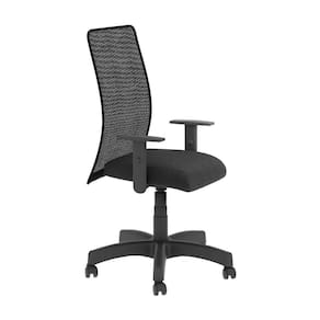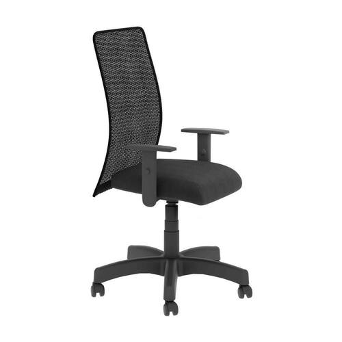 Assento em tecido Space e encostos em tela super resistente preta. Base e braço pretos.
