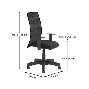 PESO PRODUTO COM EMBALAGEM (KG): 16 | ALTURA DO PRODUTO COM EMBALAGEM (CM): | CÔMODO INDICADO: Escritório | MATERIAL PRINCIPAL: Poliéster | PESO DO PRODUTO (KG): 15 | MARCA: Plata | TIPO DE CADEIRA: Escritório | COR PREDOMINANTE: Preto | LARGURA PRODUTO COM EMBALAGEM (CM): | COMPRIMENTO PRODUTO COM EMBALAGEM (CM): 75 | COMPRIMENTO DO PRODUTO (CM): 70 | PRODUTO: Cadeira de Escritório | COM RODAS: Sim | CORES DO PRODUTO (FILTRO DE CORES): Preto | DESCRIÇÃO DO TAMANHO: Altura: 116 cm x Largura: 64 x Comprimento: 70 cm | MATERIAL PARA FILTRO: Poliéster | ESTADO DE ORIGEM: SP | ALTURA DO PRODUTO (CM): 116 | PRODUTO PRECISA DE MONTAGEM?: Sim, a montagem é simples mas sugerimos a contratação do nosso serviço de montagem (para os CEPs em que o serviço está disponível) ou de algum experiente de sua preferência | COM ENCOSTO RECLINÁVEL: Não | PESO MÁXIMO SUPORTADO: 120 | LARGURA DO PRODUTO (CM): 64 | INSTRUÇÕES/CUIDADOS: Limpar com pano macio e seco, não utilizar produtos abrasivos | CONTEÚDO DA EMBALAGEM: 1 Cadeira | COM APOIO DE BRAÇOS: Sim | COM ALTURA AJUSTÁVEL: Sim | É GIRATÓRIA: Sim