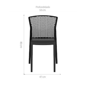 Características Técnicas: Feita em: Polipropileno com fibra de vidro e aditivo UV Largura: 47cm Profundidade: 52,6cm Altura: 79,8cm Peso máximo suportado: 154 kg Medidas: A - 79,8cm B - 47cm C - 52,6cm D - 46,9cmSobre a marca: