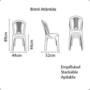 As cadeiras bistrô são certificadas pela norma ABNT 14776 e portaria 166 de 14/04/2021, na categoria de Produto B, uso irrestrito. A Cadeira Bistrô é um produto clássico da linha de móveis plásticos da Mor que reúne conforto, leveza e praticidade em um único só produto. Produzida em polipropileno com material 100% virgem, possui proteção contra raios UV, o que garante mais durabilidade. É uma cadeira muito versátil que pode ser usada na beira da praia, no camping, dentro ou fora de casa. Para facilitar o armazenamento em locais pequenos, ainda pode ser empilhada para otimizar espaço. Elas ainda possuem um assento com altura de 44,5cm e suportam até 182 Kg. Um produto com a garantia de qualidade Mor