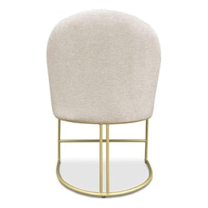 A base metálica em dourado confere à cadeira um aspecto industrial moderno, proporcionando um contraste encantador com o tecido em linho. Essa mistura de materiais agrega um ar contemporâneo e luxuoso ao ambiente, além de assegurar estabilidade e durabilidade à peça. O acabamento cuidadoso realça ainda mais a beleza e a qualidade do produto.
