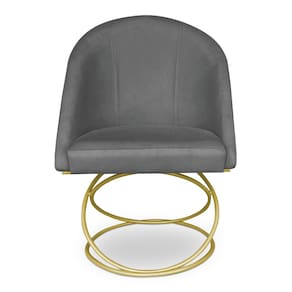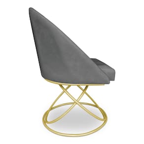 Cadeira Poltrona de Jantar Bela Suede Grafite Base Metálica Luxo Dourado - Pallazio