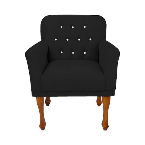 Cadeira Poltrona Estofada Com Botões de Strass Para Clínica Anitta Corano Preto LM DECOR