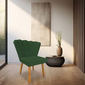 Cadeira Poltrona Flor Veludo Verde Pés Palito Castanho - Pallazio