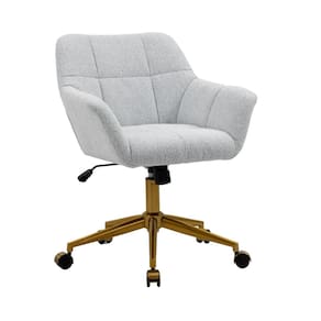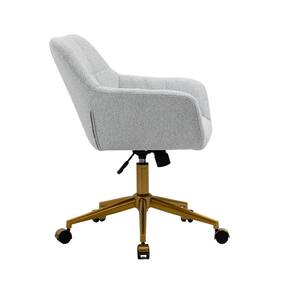 Encosto e Assento com estrutura interna em madeira, estofado e revestido em tecido cinza claro;