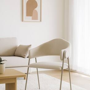 A Cadeira Poltrona Estofada é a solução perfeita para quem busca unir conforto e estilo. Com uma estrutura de aço em acabamento cor Champagnhe, ela garante conforto, durabilidade e um visual moderno. O assento e o encosto são totalmente revestidos em um elegante tecido bouclê bege, ideal para compor decorações sofisticadas. Conta com design ergonômico nos braços, podendo ser usada tanto na sala de estar, como cadeira de apoio no quarto ou até mesmo em um escritório em casa.