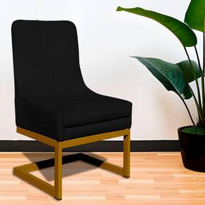 Cadeira Poltrona para Sala de Jantar Valentina Suede Base Dourada - Estopar - Preto