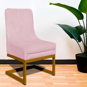 Cadeira Poltrona para Sala de Jantar Valentina Suede Base Dourada - Estopar - Rosa Claro