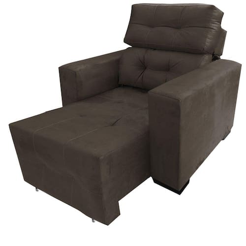 A poltrona Isabelle, é um modelo totalmente inovador, diferente de todos os outros no mercado, que se retrai ao ser puxada, trazendo um assento maior, ao estilo chaise. Essa poltrona é ideal para você que precisa relaxar ao final de um dia cansativo, assistir televisão ou até mesmo ler um livro. Muito utilizada também por idosos, e pode ser colocada na sala de estar. O assento possui Perincta de pneu e espuma D26, e o encosto é de enchimento plumante, garantindo conforto e maciez ao sentar. Maravilhoso, não é mesmo? A estrutura é toda em madeira de reflorestamento, o que deixa o produto muito mais seguro. Conta ainda com rodízios de silicone em gel, facilitando o deslizamento. Não perca tempo, garanta já a sua e invista em qualidade! Medidas da poltrona aberta: Largura 0,90M; Profundidade 1,60M; Altura 0,90M. Medidas da poltrona fechada: Largura 0,90M; Profundidade 1,10M; Altura 1,08M. profundidade do assento: Fechado 0,50; Aberto 0,94M. Altura do encosto: Fechado 0,66M; Aberto 0,76M. Descanso do pé: Largura 0,62M; Altura 0,47M. Complexidade da montagem: Média, pode ser montado por apenas uma pessoa e/ou necessite de maior conhecimento para montagem