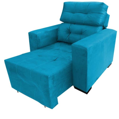 A poltrona Isabelle, é um modelo totalmente inovador, diferente de todos os outros no mercado, que se retrai ao ser puxada, trazendo um assento maior, ao estilo chaise. Essa poltrona é ideal para você que precisa relaxar ao final de um dia cansativo, assistir televisão ou até mesmo ler um livro. Muito utilizada também por idosos, e pode ser colocada na sala de estar. O assento possui Perincta de pneu e espuma D26, e o encosto é de enchimento plumante, garantindo conforto e maciez ao sentar. Maravilhoso, não é mesmo? A estrutura é toda em madeira de reflorestamento, o que deixa o produto muito mais seguro. Conta ainda com rodízios de silicone em gel, facilitando o deslizamento. Não perca tempo, garanta já a sua e invista em qualidade! Medidas da poltrona aberta: Largura 0,90M; Profundidade 1,60M; Altura 0,90M. Medidas da poltrona fechada: Largura 0,90M; Profundidade 1,10M; Altura 1,08M. profundidade do assento: Fechado 0,50; Aberto 0,94M. Altura do encosto: Fechado 0,66M; Aberto 0,76M. Descanso do pé: Largura 0,62M; Altura 0,47M. Complexidade da montagem