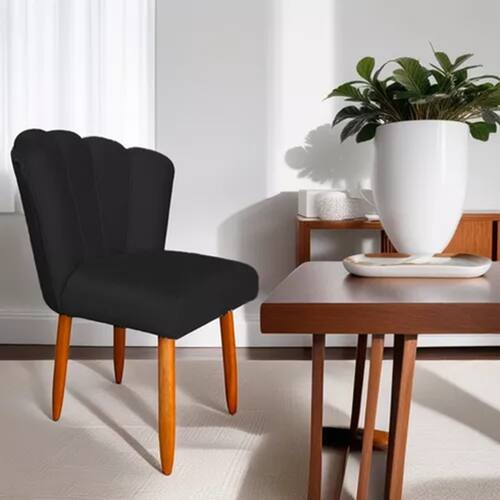 Cadeira Poltrona Sala Jantar Penteadeira Pétala Suede Preto