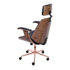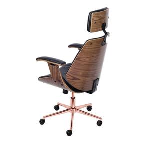 A Cadeira de Escritório Presidente Bergen Giratória na cor preta com acabamento em rose gold é uma peça de luxo que alia sofisticação, conforto e funcionalidade. Com dimensões amplas, possui largura de 63 cm, altura regulável entre 116 cm e 124 cm, profundidade de 61 cm, encosto de 71 cm de altura e assento com largura de 50 cm, além de regulagem de altura entre 45 cm e 52 cm do chão. Sua estrutura é feita em madeira compensada e o revestimento em poliuretano (PU) garante durabilidade e fácil manutenção. O assento e o encosto são estofados e contam com sistema relax e apoio de cabeça, proporcionando conforto mesmo em longos períodos de uso. A base em aço cromado com cinco pontas oferece firmeza e resistência, enquanto os rodízios em nylon permitem mobilidade e praticidade no dia a dia. Suporta até 120 kg e necessita de montagem simples. Seu design sofisticado transforma o ambiente, trazendo requinte ao escritório ou home office, enquanto sua construção robusta e ergonômica garante resistência, elegância e bem-estar durante o trabalho.