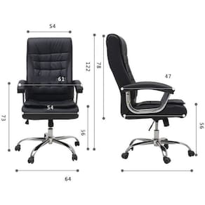 Especificações Técnicas: - Assento: Estrutura revestida em PU - Base: Aço cromado - Profundidade: 60cm - Largura: 64cm - Altura Total: Alta 123cm - Baixa 113cm - Altura do Chão até o Assento: Alta 60cm - Baixa 50cm - Altura do Chão até o Braço: Alta 79cm - Baixa 69cm - Profundidade interna do assento: 51cm - Largura interna do assento: 54cm - Base estrela com 70cm de diâmetro - Peso Máximo Recomendado: 120kg - Peso Unitário: 12kg - Garantia: 90 dias após o recebimento