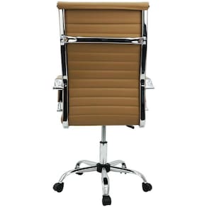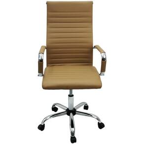 Cadeira Presidente Escritório Esteirinha Boston Eames Alta - Bege Cadeira Charles Eames Presidente Esteirinha Estofada Couro