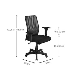 Base giratória preta com relax e regulagem de altura com sistema a gás. Encosto de Tela 100% Poliéster extra forte com resina anti-encolhimento. Assento com Espuma Injetada D-45, extra conforto com alta qualidade. Tapeçada com tecido espumado extra macio.