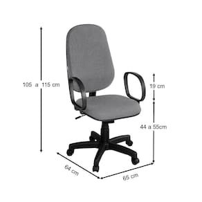 Base giratória com relax e regulagem de altura com sistema a gás. Assento e encosto injetado e anatômico e tapeçado em tecido J. Serrano. Base e Braço na cor preta.