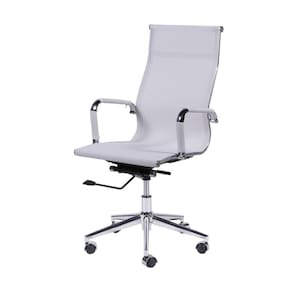 Material: Tela Mesh, Metal e Nylon. Acabamento: Tela Mesh Base e braços: Cromado Assento e encosto com mecanismo relax e travamento. Rodízio anti-risco Altura do assento até o chão: 46 à 59cm Dimensões (LxPxA): 61 x 48 x 105 à 113 cm Peso: 15 Kg Peso Máximo Suportado: 120 Kg