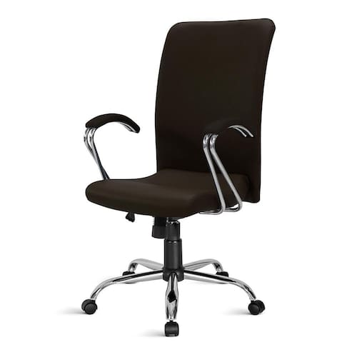 * Braços fixos cromados com apoio revestido em courvim 100% pvc.