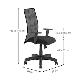 Base giratória com relax e regulagem de altura com sistema a gás. Encosto de Tela 100% Poliéster extra forte com resina anti-encolhimento. Assento com Espuma Injetada de alta qualidade. Tapeçada com tecido J. Serrano.