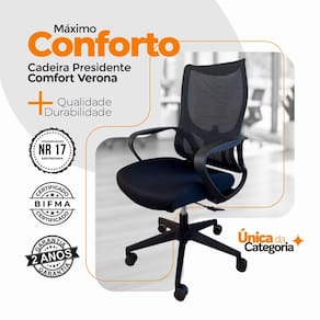 Projetada para quem exige conforto e postura durante longas horas de trabalho, a Cadeira Comfort Verona entrega ergonomia de ponta, materiais de qualidade e visual moderno.