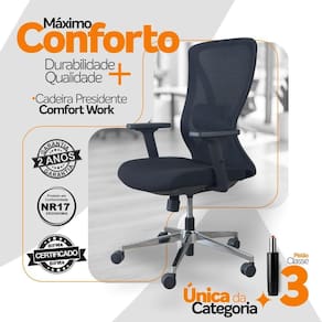 Com estrutura , materiais de alta performance e ajustes ergonômicos, a Comfort Work oferece mais conforto, produtividade e qualidade de vida no seu dia a dia.