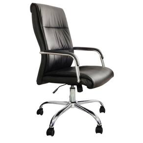 Descrição Resumida | Possui base giratória, função de ajuste de altura do assento, sistema Relax, espuma com densidade controlada e assento com madeira multi laminada. Sua estrutura é de aço cromado e o revestimento é em couro sintético preto. |