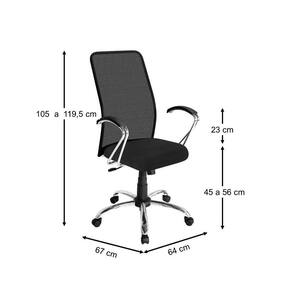 Base giratória cromada com relax e regulagem de altura com sistema a gás. Assento em tecido Space e encostos em tela super resistente preta Base e braço cromados.