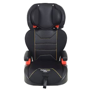 Características Principais • Protetor para cabeça removível; • Apoio para a cabeça regulável em três posições; • Encosto ajustável; • Estrutura em plástico de engenharia, leve e resistente; • Assento com apoio para os braços; • Reclinável em duas posições; • Base fechada, para proteger o banco do carro.