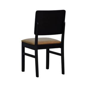 Cadeira Quéops Madeira Maciça Encosto Anatômico Assento Estofado - Preto Corano Marrom Mescla -