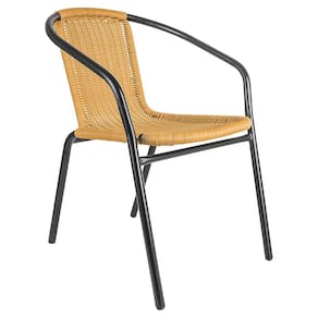 CARACTERÍSTICAS: Cadeira rattan PVC. Empilhável, fixa, com encosto curvo e apoio de braços. Cadeira para terraços e espaços abertos, com quadro preto, resistente e de grande comodidade.