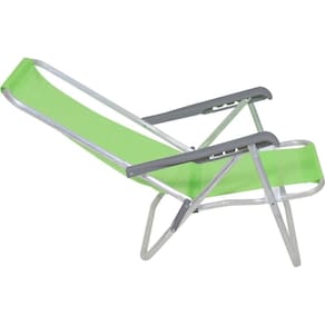 Especificações Material da Estrutura: Alumínio Material do Tecido: Sannet (100% Poliéster com revestimento em PVC) Número de Posições: 4 Apoios de Braço: Polipropileno Medidas da Cadeira: 66 cm x 54 cm x 85 cm Peso Suportado da Cadeira: 100kg Itens Inclusos Cadeira Reclinável Lazy Verde Bel Perguntas Frequentes (FAQ) Pergunta: A cadeira é resistente à água salgada?