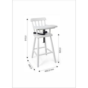 Cadeira refeição com a estrutura toda em madeira, ótimo acabamento, resistência e estabilidade. Cadeira conta com cinto para garantir mais segurança dos pequenos (as) e facilitar a alimentação dos mesmos. Acabamento da Estrutura: Laca Altura do assento até o chão: 62 cm Ambiente Principal: Cozinha Cor: Branco Cor do Produto: Branco Dobrável: Não Escala de Brilho: Semi-Fosco Estrutura do Assento: MDF Estrutura do Encosto: Madeira Eucalipto e MDF Giratória: Não Informações Complementares: Largura do assento 35cm Itens Inclusos: 1 Cadeira Linha ou Coleção: Refeição Manual de Montagem e Instalação: https://cdn2.madeiramadeira.com.br/atributo/moveis-deiss/1271144-cadeira-refeicao-2022.pdf Material da Base: Madeira Necessita Montagem: Não Origem do Produto: Nacional Peso: 4,78 kg Possui Apoio para Braços: Não Possui Apoio Para os Pés: Sim Possui Rodízio: Não Recomendações de Uso, Manutenção e Limpeza: Limpar com pano úmido, sem produtos químicos Tipo de Assento: Fixo Tipo de Encosto: Fixo Tipo de Madeira Maciça: Eucalipto