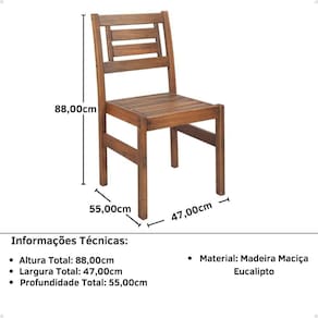 A Cadeira Rústica é confeccionada totalmente em Madeira Maciça, material resistente que assegura alta durabilidade e resistência ao produto.