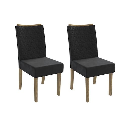 Cadeira Sala de Jantar 2CAD129NG Kit 2 Un Nogueira/Veludo Preto A038 - Kappesberg