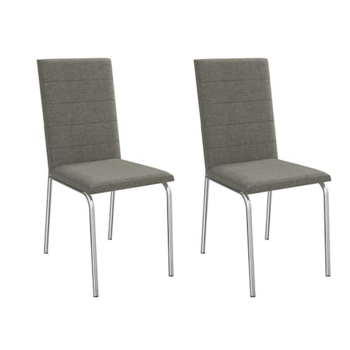 Cadeira Sala de Jantar Amsterdã 2C091 Aço Kit 2 Un Cromado/Linho Escuro - Kappesberg