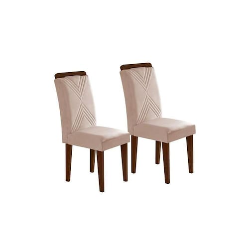 Cadeira Sala de Jantar Amsterdã Madeira Kit 2 Un Capuccino/Veludo Pérola - Rufato - Blush