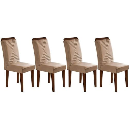 Cadeira Sala de Jantar Amsterdã Madeira Kit 4 Un Capuccino - Linho Turim - Rufato - Blush